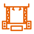 Die Traglast Podestfläche-Bühne bietet eine Tragkraft von 350 kg/qm bei einer Gesamtfläche von 25 qm und einer lichten Höhe von 4 m – perfekt für kleinere Events und ohne großen Aufwand einsetzbar.